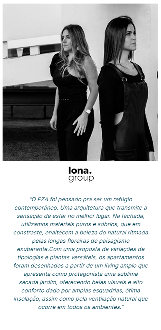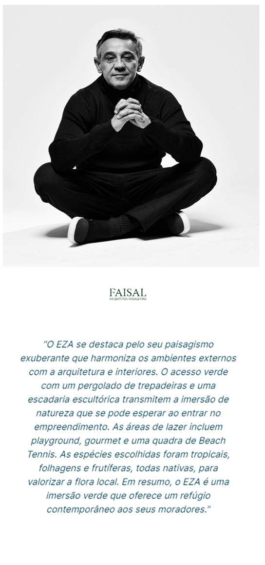 A arquitetura minimalista e sofisticada cria uma sensação de estar no melhor lugar possível, enquanto os interiores oferecem espaços funcionais e estéticamente arrojados. O EZA é um convite para experimentar a harmonia entre a natureza e a arquitetura moderna em um ambiente refinado e excepcional.