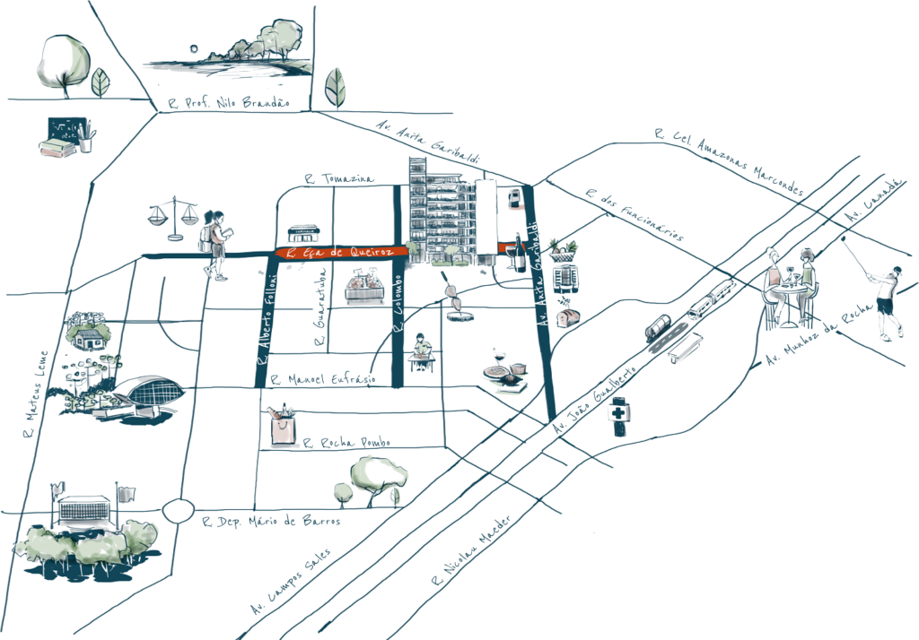 O EZA LIVING está localizado na Rua Eça de Queiroz, 1178, Ahú